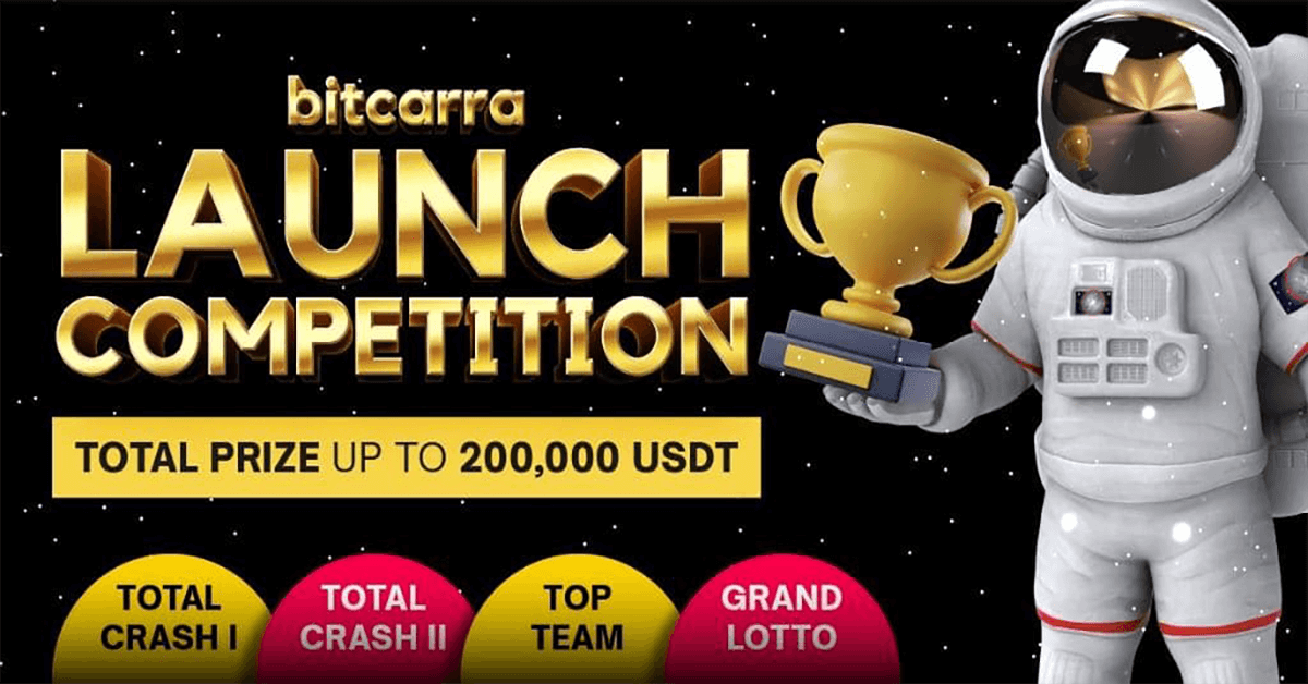 Bitcarra Launch Competition (BLC) will give players the opportunity to win up to 200,000 USDT. The Total Crash competitions and Grand Lotto are open for everyone.